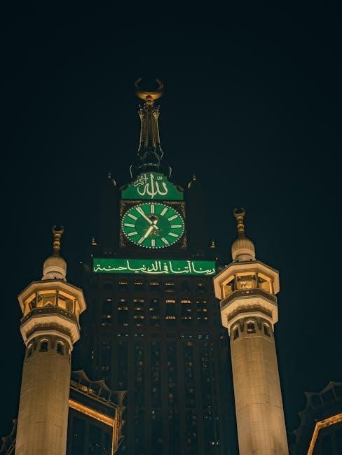 The HA-4005 is a popular Al Harameen Azan Clock model, requiring initial setup of time and location through the device’s controls. Accurate prayer times depend on selecting the correct Taqweem system and city.